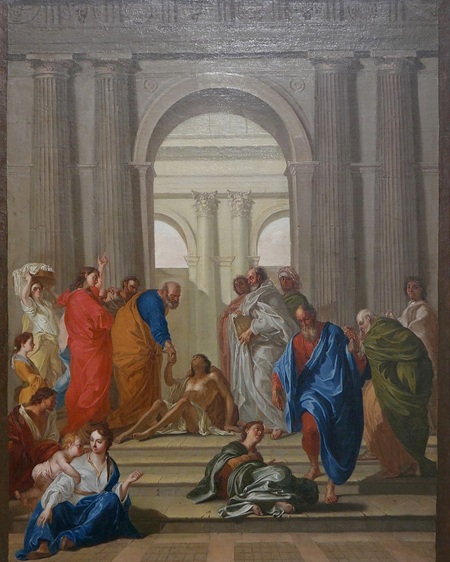《彼得和约翰在耶路撒冷圣殿入口处治愈瘫痪病人》( St. Peter and St. John Healing the Paralytic at the Entrance to the Temple of Jerusalem),吉恩-弗朗索瓦・德・特洛伊(Jean-Françoisde Troy),1687年。(图片来源/WIKIMEDIA COMMONS)