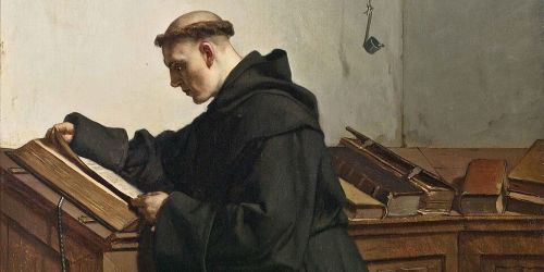 《路德查考圣经》( Luther discovers the bible),费迪南德・保维尔斯 (Ferdinand Pauwels),1860-1903年。(图片来源/WIKIMEDIA COMMONS)