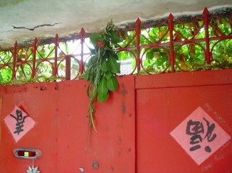 传统上,人们会在端午节当天喝雄黄酒,并将五种植物:菖蒲、艾草、石榴花、蒜头和山丹,插于门上去毒害。除了去毒害,民间还流传着另一个感人的典故。